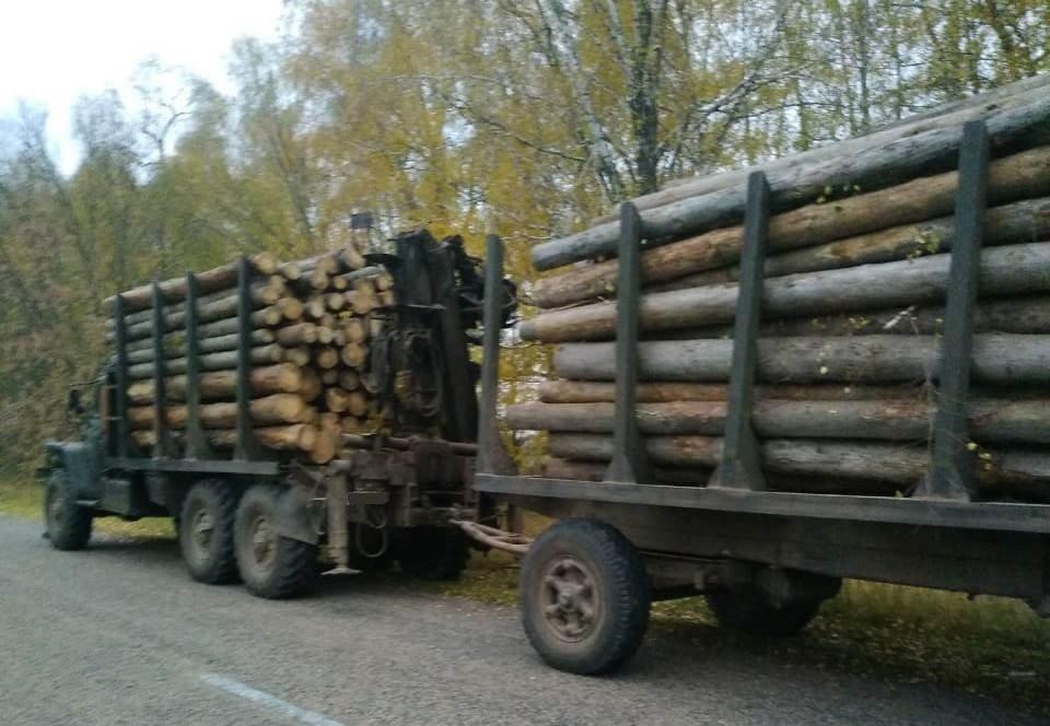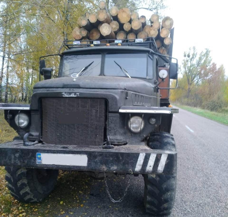 Оперативні співробітники Держприкордонслужби в контрольованому прикордонному районі зупинили вантажівку УРАЛ з причепом вщерть завантажену діловим лісом