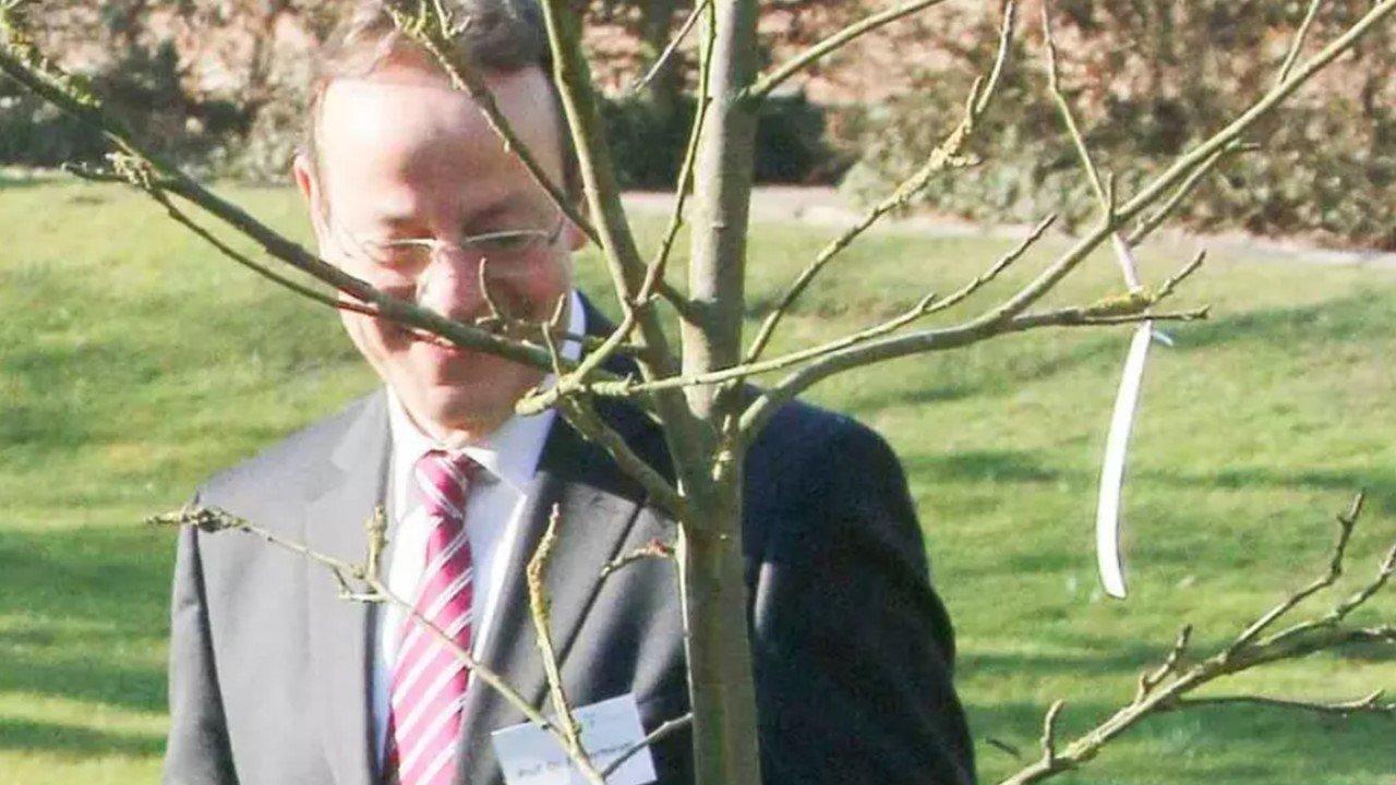 На фото: Профессор Фолькхард Изермейер сажает дерево в 2015 году (Источник изображения: picture alliance / BREUEL-BILD)