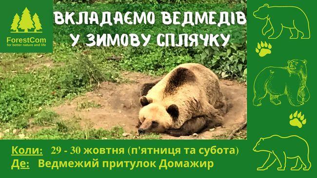Це спільна справа громадської організації «Лісові ініціативи і суспільство» та ведмежого притулку «Домажир», що на Львівщині. Упродовж двох днів, 29-30 жовтня, у всіх охочих є можливість долучитися до підготовки ведмежих вольєрів до зими. Робота передбачатиме прибирання та розчищення заростей на території притулку. «Учасники заходу зможуть поспостерігати за ведмедями та дізнатися більше про велич цих тварин, а також — насолодитись прогулянкою на території притулку, щоб краще ознайомитись з ним», — анонсують у ГО «Лісові ініціативи і суспільство».