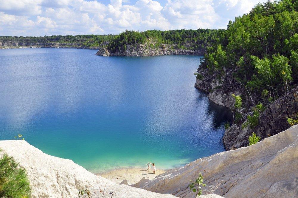 Когда-то здесь добывали кварц и гранит, а после выработки карьер заполнился грунтовыми водами. Кристально чистая вода благодаря отражению растущих на склонах деревьев и небесной лазури кажется изумрудно-голубой.