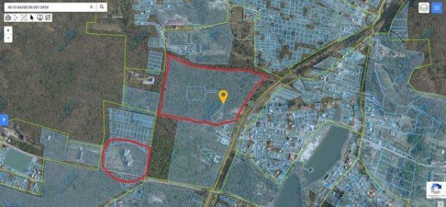 “На скріні із кадастрової карти позначив ділянки, про які мова – там, де прапорець. Більша – виділена червоним і менша – всередині. Для мешканців Брюховичів уточню: ліворуч нижче – «списана» школа (теж обкреслив червоним). Для не мешканців Брюховичів скажу інакше: це фактично центр села, неподалік від озера, про яке ви точно чули або й були там”, – зазначає Зубач.