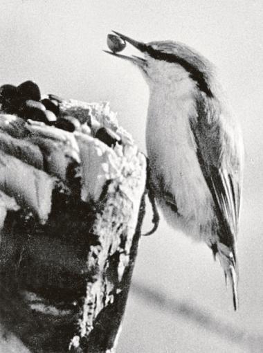 Позже поползень не раз появлялся на прежнем месте, но дощатый домик был пуст. А зимой интереса ради я тщательно осмотрел бревна домика и нашел между ними несколько забытых орехов и улыбнулся: спешил поползень спрятать добычу.