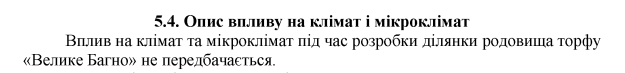Однак, розробники звіту неодноразово повторюють, що видобуток торфу не матиме впливу на клімат. Наприклад, абзац зі стор. 85 звіту: