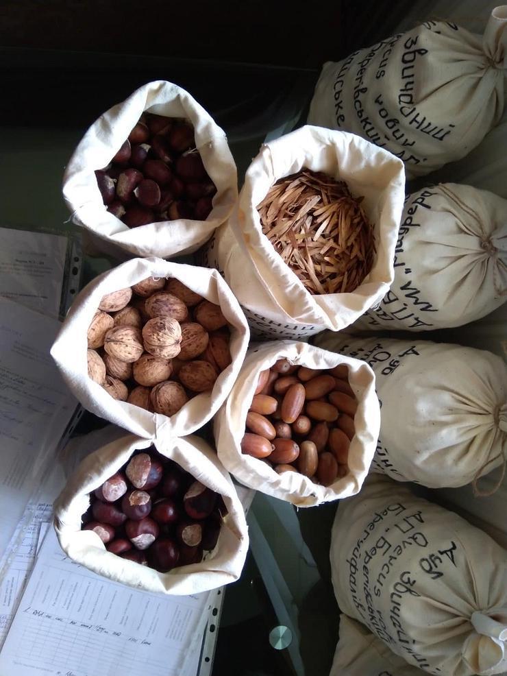 Крім дуба, зібрали й насіння інших порід. А це – каштан їстівний, горіх грецький і чорний, липа…