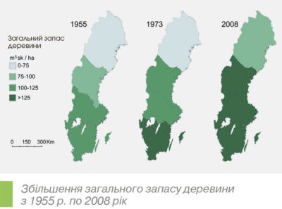 Швеція – країна, в якій переважають ліси. На її частку припадає трохи менше 1% світових площ лісів і 10% світового експорту пиломатеріалів. Менше, ніж за 100 років лісові активи Швеції збільшилися вдвічі: кількість лісу постійно зростає з року в рік, а загальний обсяг деревини становить понад 3 млрд кубометрів. Сьогодні ліс вкриває приблизно 70% території країни, займаючи площу понад 28 млн га, в основному це хвойні породи, а листяний ліс переважає тільки на крайньому півдні. Близько половини лісів Швеції перебувають у приватній власності.