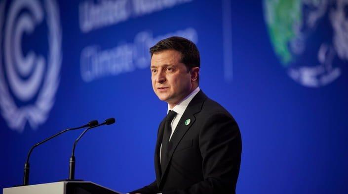 ФОТО ПРЕССЛУЖБИ ПРЕЗИДЕНТА УКРАЇНИ Виступ Володимира Зеленського на кліматичній конференції у Глазго. 1 листопада 2021 року