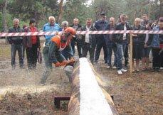 ВІДКРИВ щорічні змагання начальник Дніпропетровського обласного управління лісового і мисливського господарства Василь Клешня. На території лісу професійні звальщики лісу змагалися на швидкість заміни ланцюга на бензопилі, валки дерев, обрізки сучків.