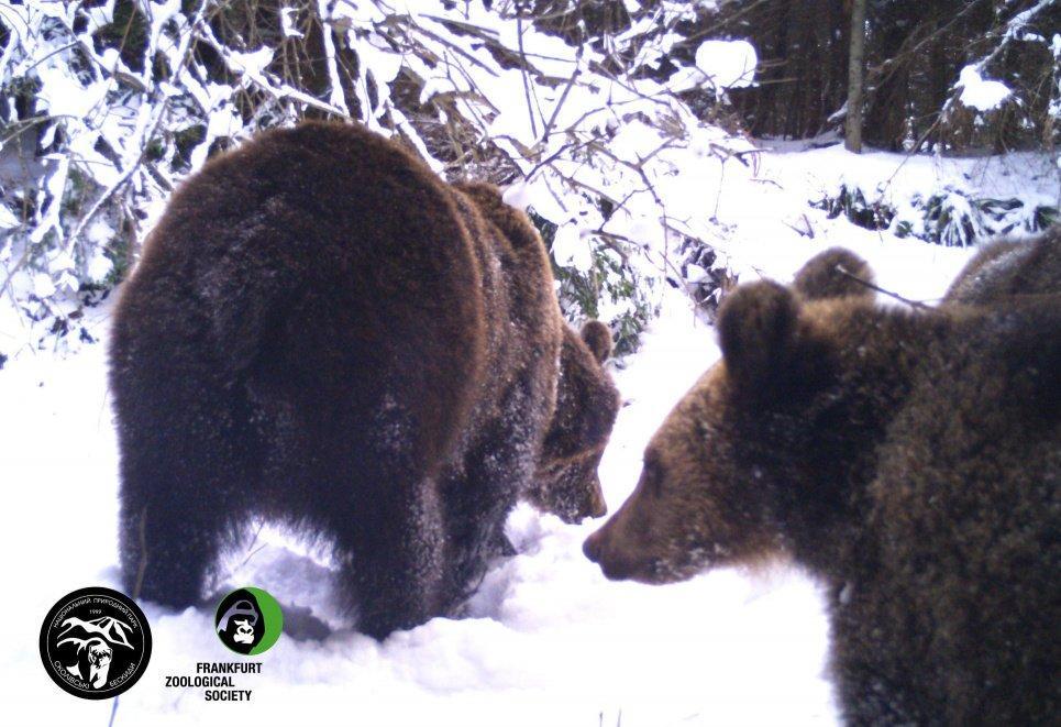 Одна з фотопасток, встановлених в рамках проведення моніторингу біорізноманіття у співпраці із Франкфуртським зоологічним товариством, як частини Міжнародної Кліматичної Ініціативи, зафіксувала ведмедицю з трьома ведмежатами. На фото видно як вони грайливо перекочуються на снігу.