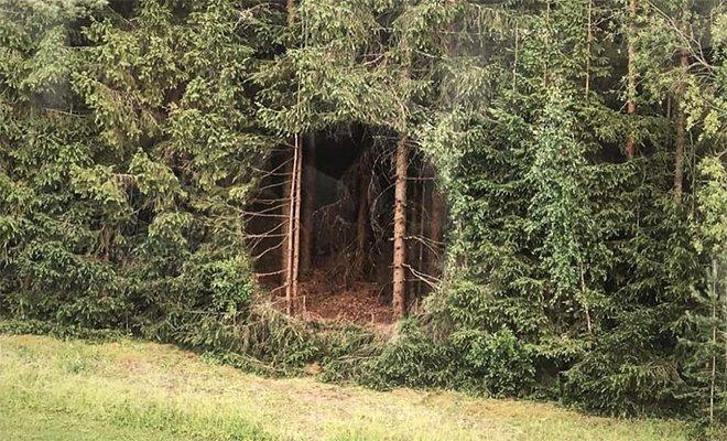 Жители эстонской деревни Отепяя пойдя в лес с удивлением обнаружили, что на краю лесной чащи в кронах появилась идеально круглая дыра, ведущая внутрь.