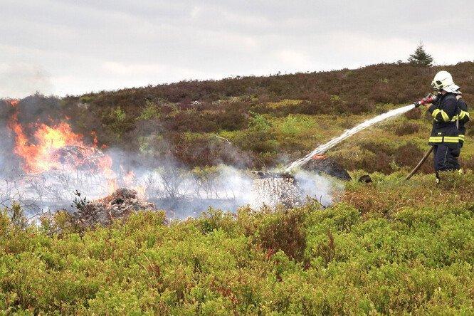 AOPK ČR (Агентство охраны природы Чешской Республики) в сотрудничестве с Пожарно-спасательной службой (HZS) Пльзеньского края экспериментально проверили контролируемое выжигание деградированных вторичных пустошей на охраняемой ландшафтной территории Брды в формате учений HZS. Во время эксперимента удалось протестировать организацию и различные способы обеспечения управления огнем, а также измерить основные данные, описывающие ход горения (Fišer 2016).