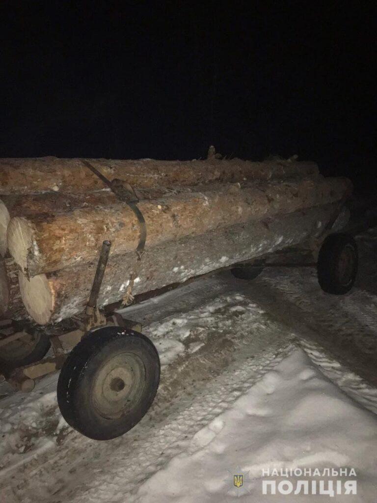 Після зупинки транспортного засобу та з’ясування усіх обставин, на місце події викликали слідчо-оперативну групу, яка вилучила причіп із сімома колодами породи сосна.