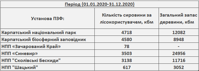 Аналізуючи статистичні дані, розміщені на сайті Державного підприємства «Лісогосподарський Інноваційно-Аналітичний Центр», нами було виявлено, що 6 установ ПЗФ Карпат проводять рубки лісу, деревина з яких йде на експорт.