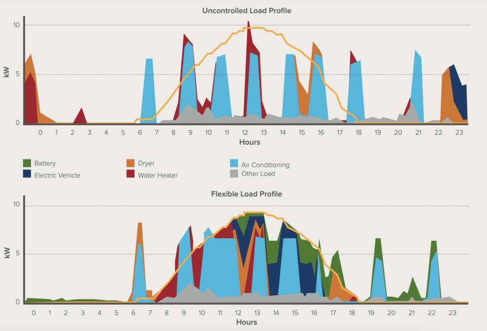 Некоторые данные свидетельствуют о еще большем потенциале: почасовое моделирование энергосистемы Техаса 2050 года показало, что восемь типов реакции спроса могут устранить резкий скачок спроса на электроэнергию ранним вечером, когда мощность солнечной энергии падает, а нагрузка на домохозяйства резко возрастает. Например, доступная в настоящее время технология хранения льда замораживает воду, используя более дешевое электричество и более холодный воздух, обычно ночью, а затем использует лед для охлаждения зданий в жаркие дни. Это снижает потребность в электроэнергии для кондиционирования воздуха и экономит деньги, отчасти потому, что емкость для хранения тепла или охлаждения намного дешевле, чем хранение электроэнергии для их доставки. Точно так же, не меняя схемы вождения, многие электромобили можно разумно заряжать, когда электричество становится более доступным, доступным и возобновляемым.