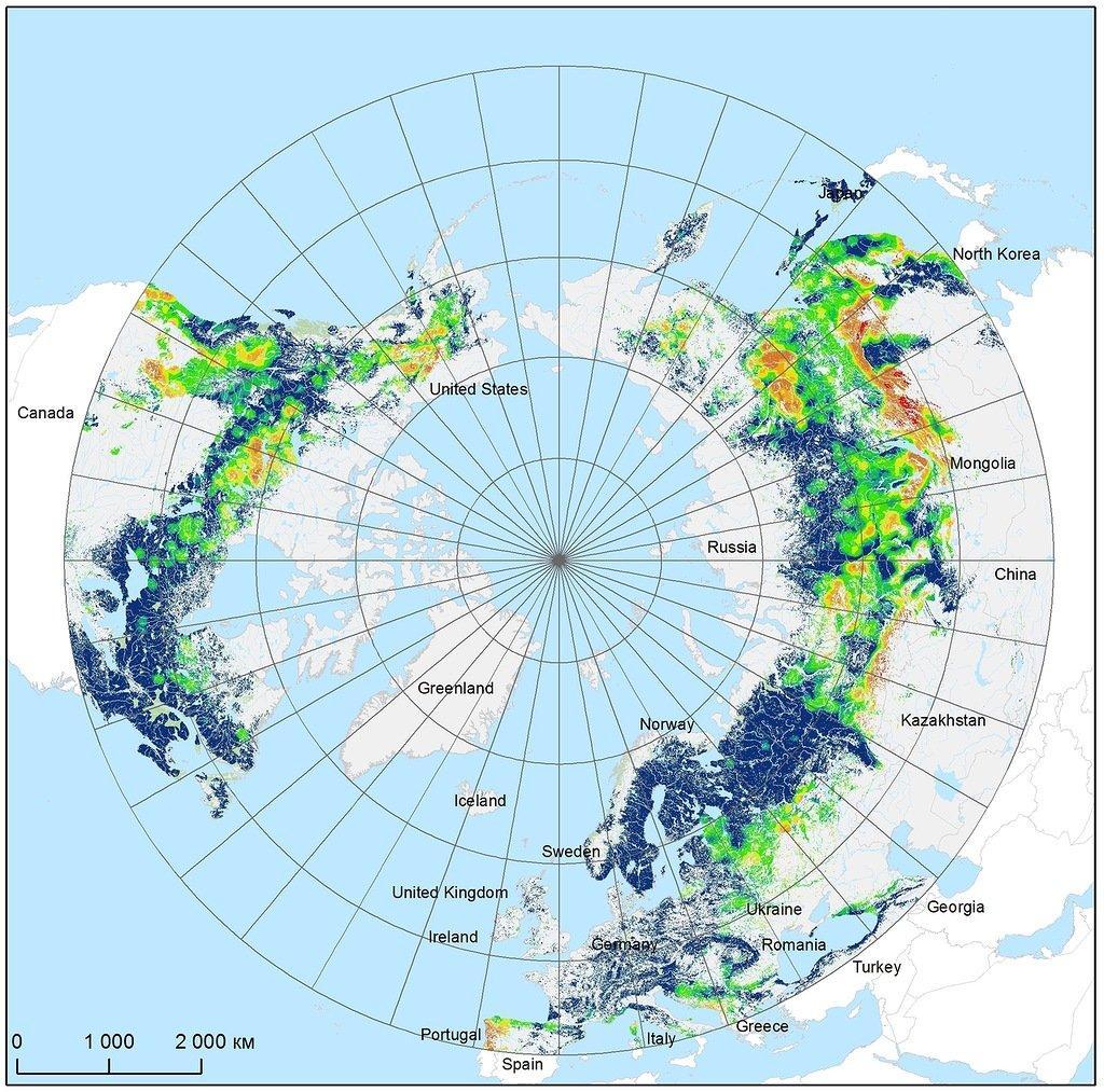 Для анализа была взята территория, расположенная к северу от сороковой параллели – в нее входят все бореальные или таежные леса независимо от используемой системы классификации и зонирования (в работе мы ориентировались в первую очередь на то, чтобы изучить ситуацию в бореальных лесах крупных северных стран, сильнее всего страдающих от пожаров – России, Канады и США).