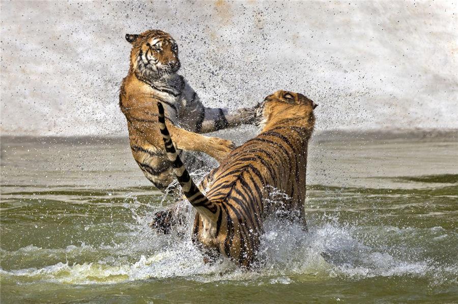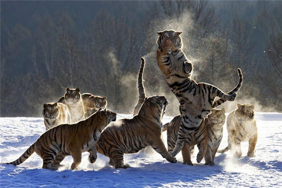Оригинально отметили приближения года тигра в Китае. Сегодня центральная газета Китая Chinadaily разместила лучшие фотографии животных, сделанные профессиональным фотографом Пань Сонги в Парке амурских тигров в провинции Хэйлунцзян на северо-востоке Китая. Фотографии великолепно передают силу и дух амурского тигра. Посмотрите.