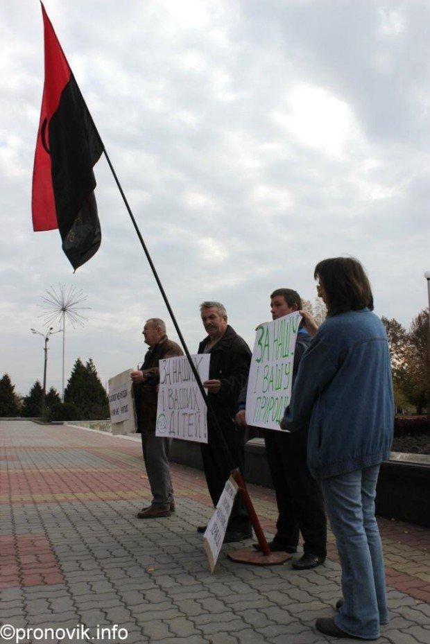 Сьогодні о 10.30 четверо нововолинців, яких ви бачите на фото, влаштували біля міськради пікет. На тлі державного синьо-жовтого прапора розгорнули плакати: «За нашу і вашу природу! За наших і ваших дітей!»