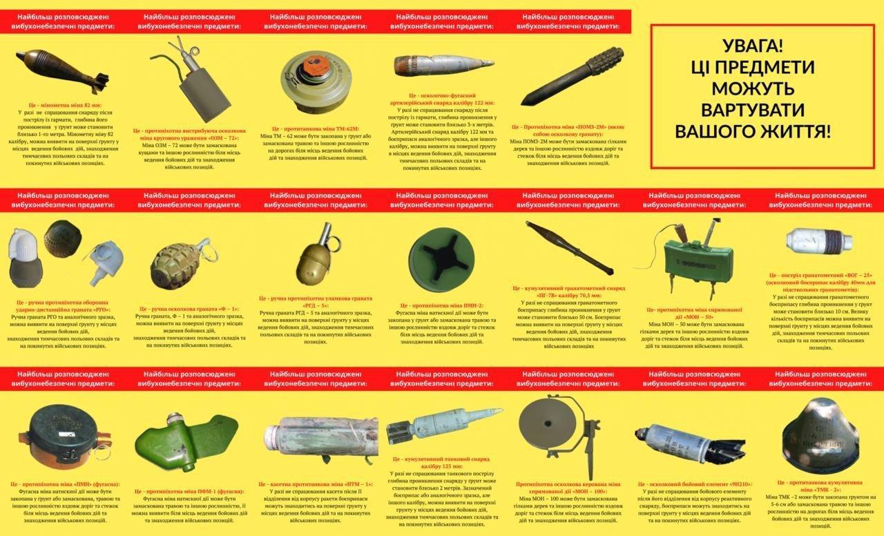 Міни та інші вибухонебезпечні предмети можуть бути будь-де: у покинутих будинках, на вулицях, на дитячих майданчиках, на заміському відкритому просторі: у полях, лісах, у водоймах, на узбіччях доріг тощо.
