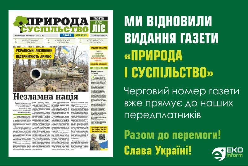 Видавництво «ЕКО-інформ» відновлює видання друкованої газети «Природа і суспільство».У цей складний для всіх нас період, інформаційний фронт має працювати як ніколи.