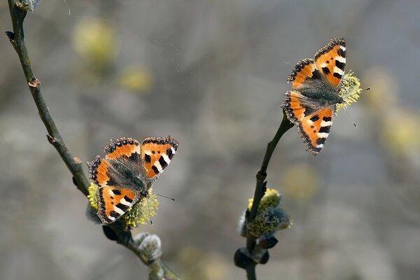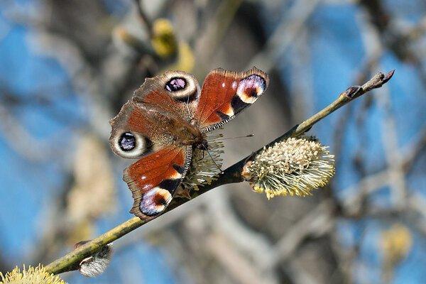 Здесь на цветочных серёжках ивы можно увидеть не только пчёл со шмелями, но и множество бабочек, украшающих своими яркими расцветками ветви дерева.