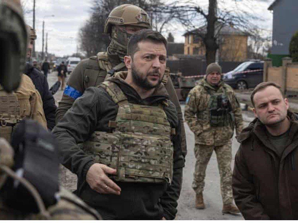 Фото: Президент Украины Владимир Зеленский посетил Бучу в начале этого месяца. Он предсказал «бесконечную кровавую баню» без усиленной поддержки Запада. Фотография: Марко Джурика/Reuters