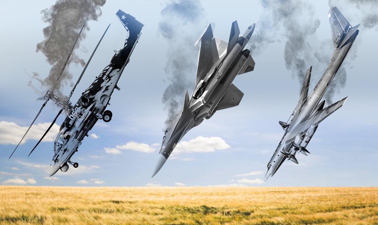 На відміну від України, яка все ще використовує в небі застарілі радянські важкі винищувачі Су-27, легкі винищувачі МіГ-29, бомбардувальники Су-24, штурмовики Су-25 та вертольоти Мі-24, Росія поки послуговувалася у війні більш сучасними модифікаціями літальної техніки.