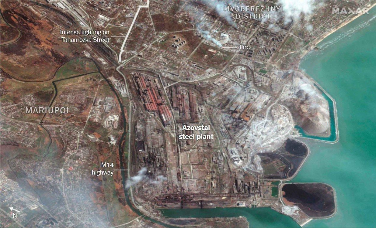 В то время как Россия объявила о своей победе в осажденном Мариуполе — порту, который является ключом к ее цели по обеспечению сухопутного коридора между восточной Украиной и аннексированным Россией Крымским полуостровом, — группа украинских военных остается в блокаде внутри обширного сталелитейного завода. Британская разведка заявила, что «ожесточенные бои продолжаются, что сводит на нет попытки России захватить город, тем самым еще больше замедляя их желаемое продвижение на Донбассе».