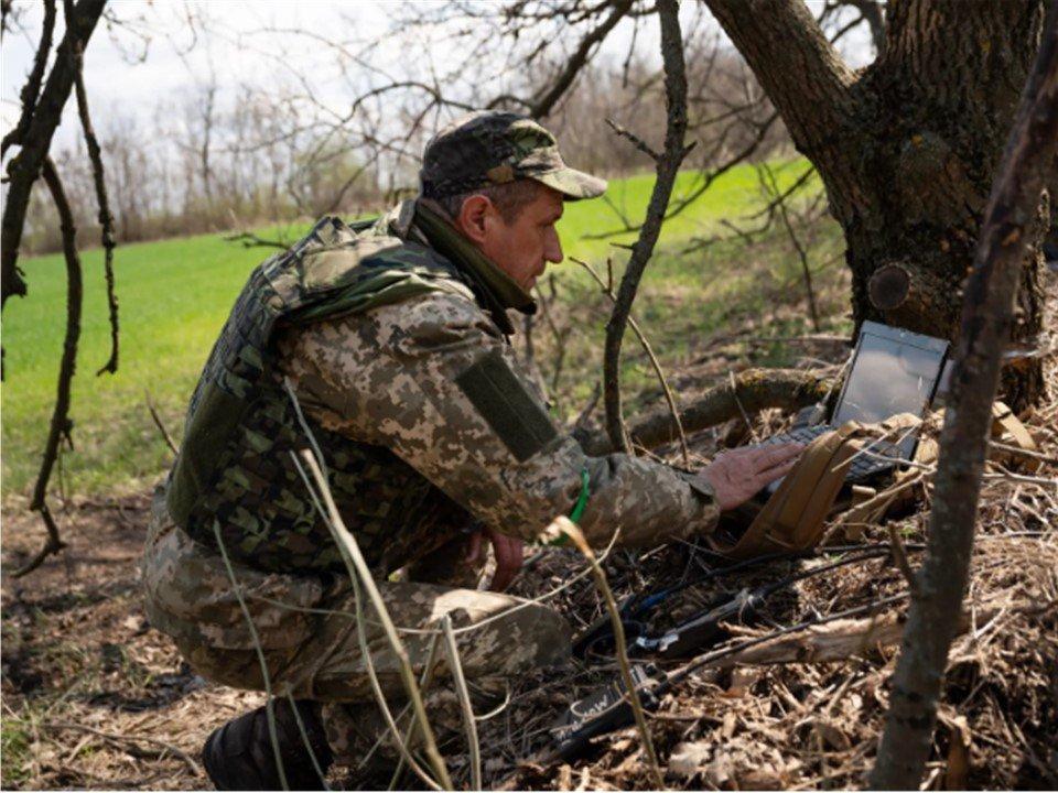 Украинский боец работает над налаживанием каналов связи в пятницу недалеко от линии фронта в Запорожской области. Фото… Линси Аддарио для The New York Times