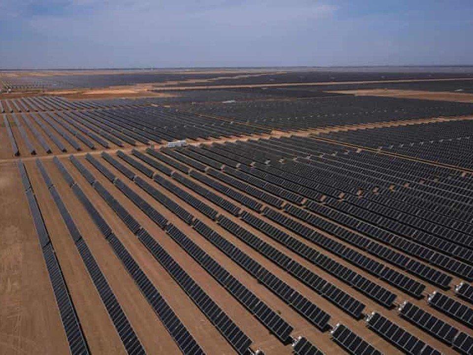Ферма с солнечными батареями на месте, которое когда-то использовалось для сельского хозяйства, в пострадавшей от засухи Центральной долине Калифорнии недалеко от Гурона. Фотография: Робин Бек/AFP/Getty Images