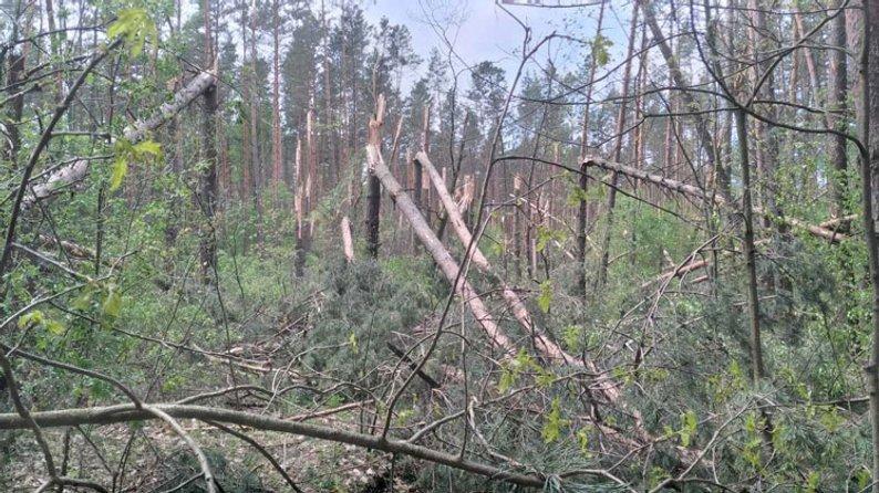 У Конотопському держлісгоспі у лісових масивах Дубовицького лісництва 0,7 га майже повністю пройдене вітровалом.