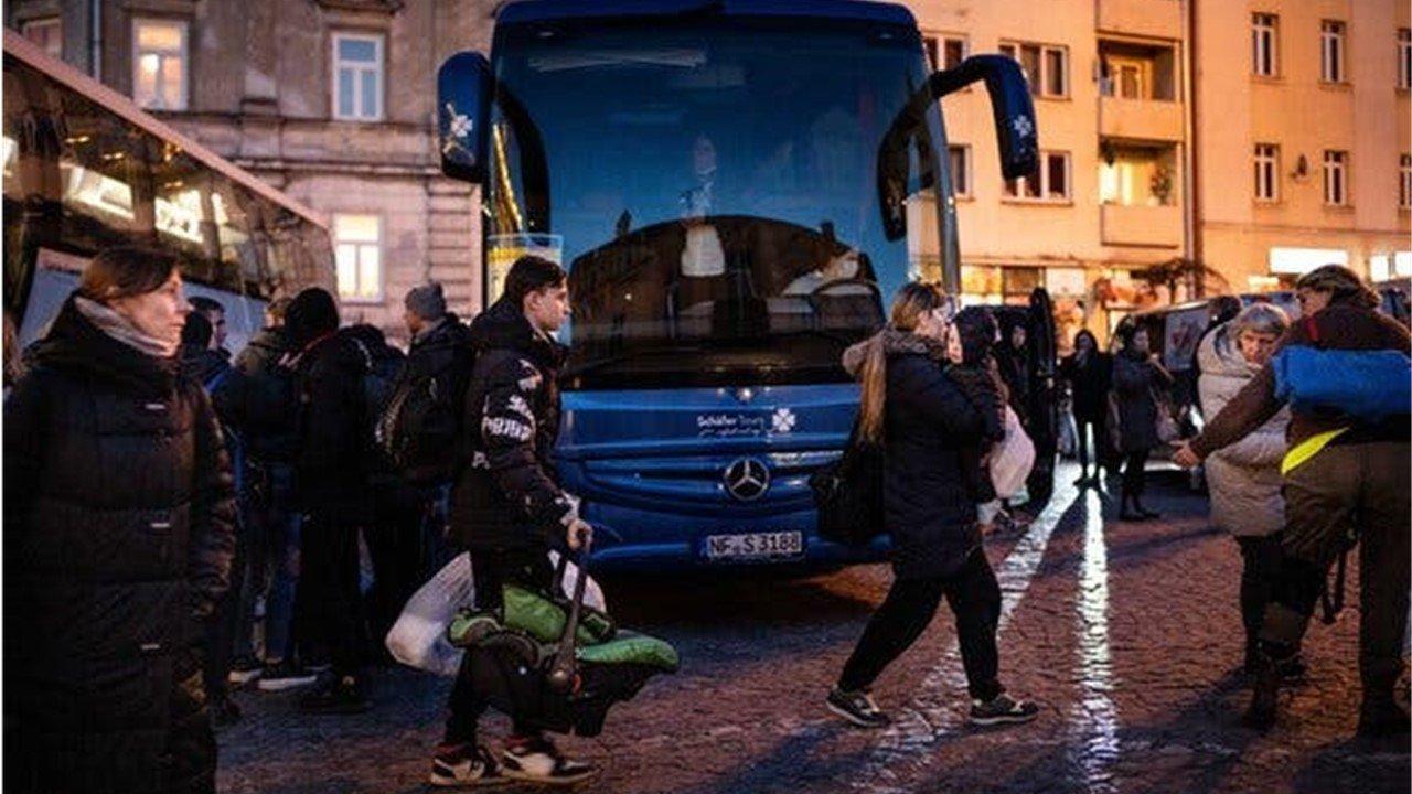 Беженцы, спасающиеся от войны в Украине, прибыли в Пшемсиль, Польша, в марте. Конфликт наносит экономический ущерб Польше, которая приняла более трех миллионов беженцев. Фото … Эрин Шафф / The New York Times