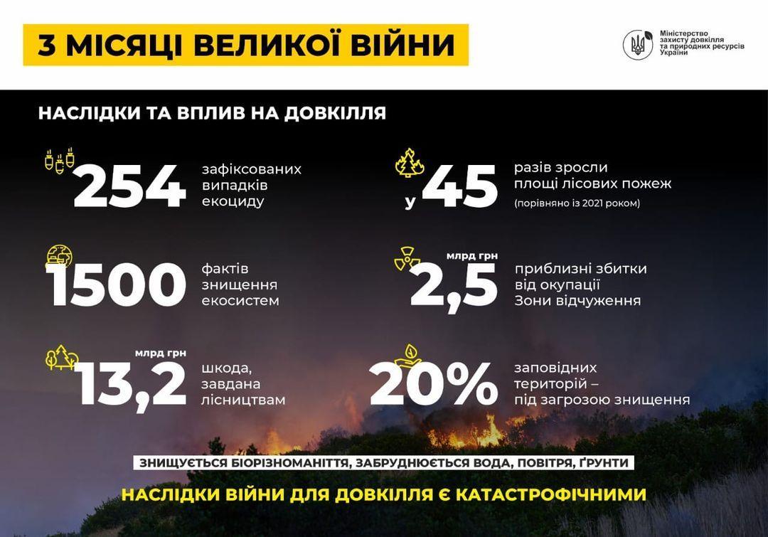 У інфографіці лише декілька ключових фактів шкоди, яку упродовж трьох місяців завдали рашисти в довкіллєвій сфері.