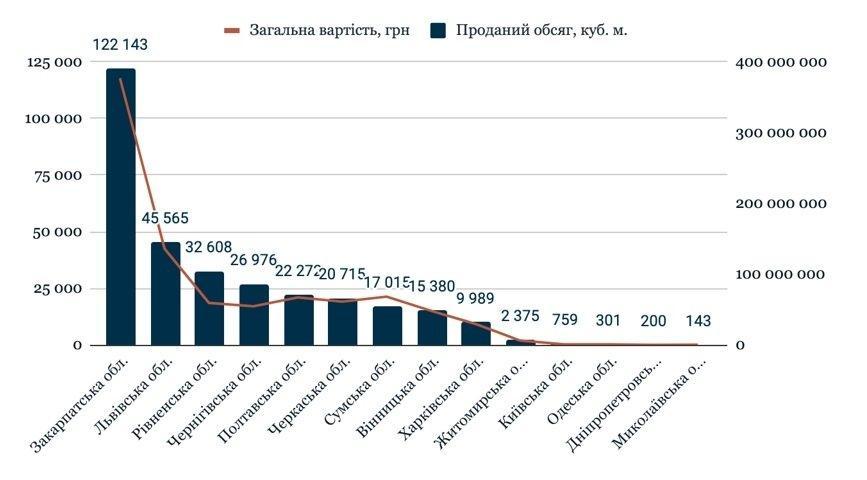 - вартість продажу деревини склала 909,7 млн грн (з ПДВ);