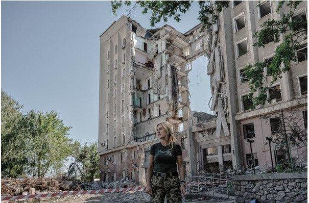 Эта реальность тяжела. Анна Замазеева, глава Николаевского областного совета, провела меня в свой бывший офис — здание с зияющей дырой посередине, куда 29 марта попала российская крылатая ракета, в результате чего погибли десятки ее коллег. Опоздание на работу в последнюю минуту спасло ей жизнь.