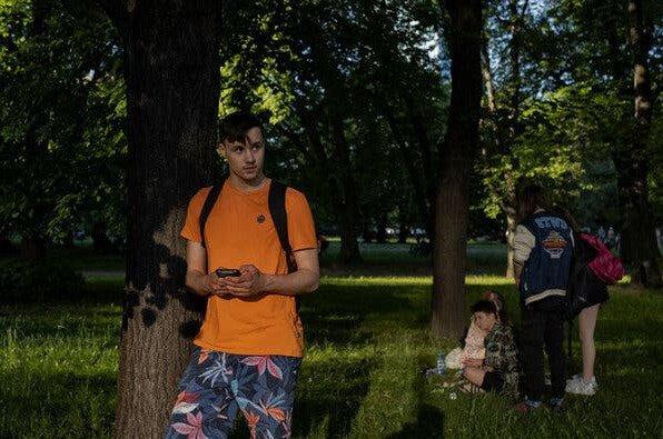 Варшавский парк стал излюбленным местом встреч многих украинских подростков, бежавших в Варшаву после вторжения России в их страну. Предоставлено… Мацек Набрдалик для The New York Times