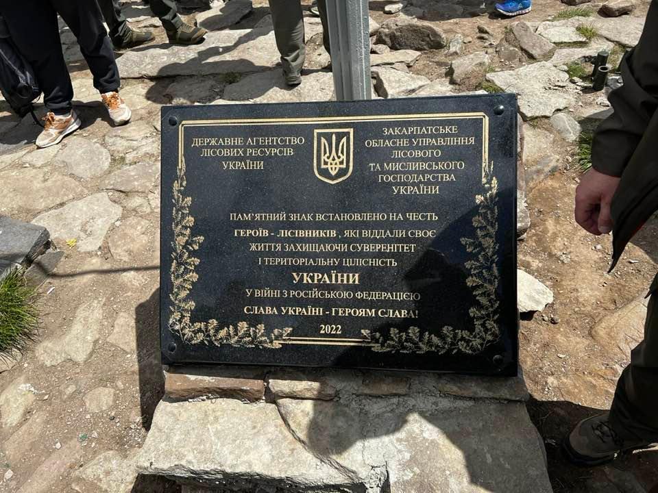 На вершині лісівники відкрили меморіальну дошку на честь героїв-лісівників, які віддали своє життя обороняючи суверенітет України у війні із рф.