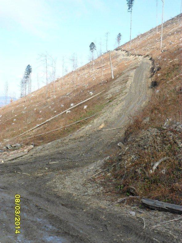 По таких штучних, стрімких оперізуючих гору технологічних лісотранспортувальних шляхах дощові потоки під час зливи повноводною річкою стікають прямо у русла водоносних потічків у забір, бо ж пеньки воду не тримають.