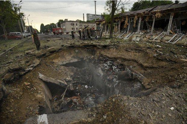 Воронка от снаряда после российского ракетного удара, пока Россия продолжает наступление в Украине, в Днепре, Украина, 16 июля 2022 года. REUTERS/Микола Синельников