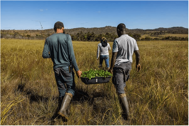 Жарким апрельским утром, незадолго до начала засушливого сезона в Бразилии, четыре женщины и двое мужчин шли гуськом по мокрому полю на окраине Энженьо, деревни в северной части штата Гояс. Они были в одежде с длинными рукавами и широкополыми шляпами для защиты от солнца, а также в кожаных гетрах и перчатках для защиты от змей. В пластиковой бадье несли саженцы.