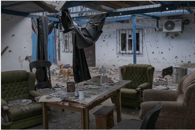 Центральные здания были сильно повреждены и выжжены огнем. «Вы видите, что делает эта война?» — сказал майор.