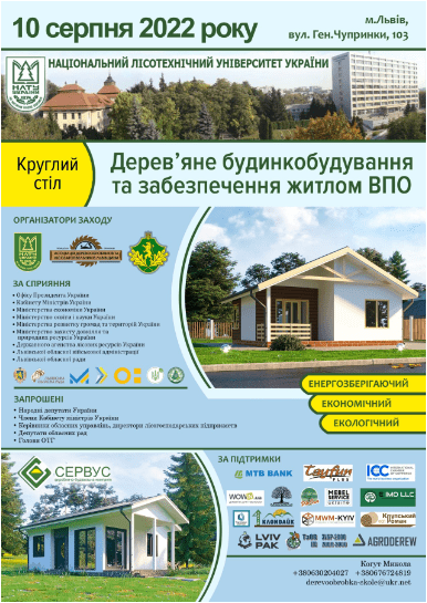 Саме тому 10 серпня на площадці Національного лісотехнічного університету України у м. Львів буде проведено круглий стіл на тему «Дерев’яне будинкобудування та забезпечення житлом ВПО».