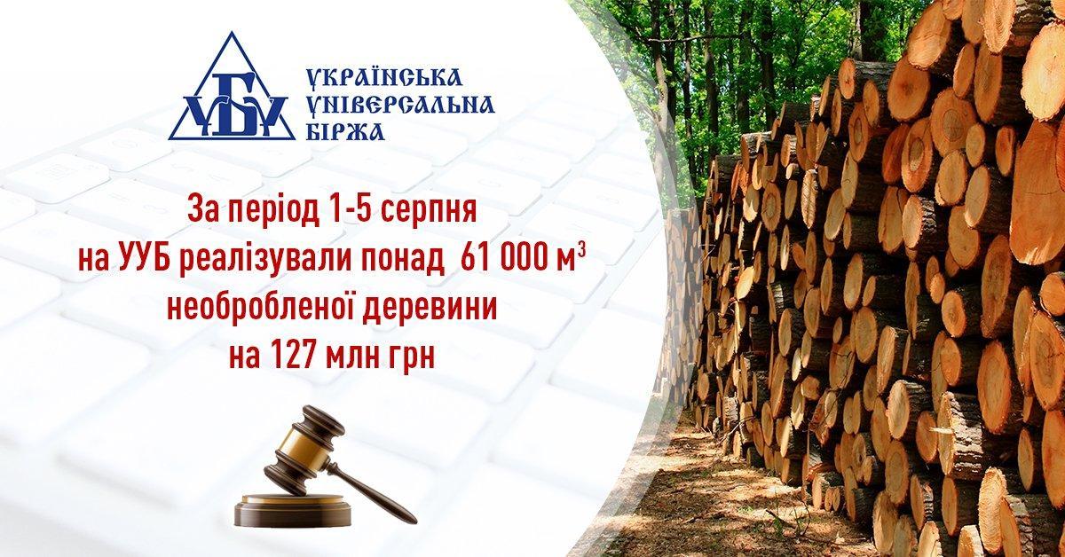 У період з 1 по 5 серпня на Українській універсальній біржі було проведено 46 торгів на яких лісгоспи реалізували 61, 717 тис. куб. м необробленої деревини на суму 127, 298 млн грн. Укладено 320 угод. З 364 учасників 244 стали переможцями. Додатковий дохід держави склав 6, 972 млн грн.