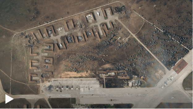 Взрывы на авиабазе на оккупированной Россией территории повредили 62 многоквартирных дома и заставили сотни людей уйти в укрытия. На спутниковых снимках видны уничтоженные истребители.