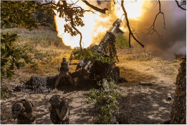 Артиллерийское подразделение 58-й бригады Украины в среду вело огонь с передовой возле города Бахмут по наступающей российской пехоте в районе города Покровское. Предоставлено… Дэвид Гуттенфельдер для The New York Times