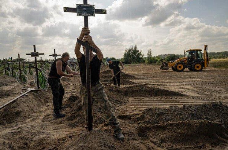 Массовые захоронения в Буче, Украина, в этом месяце. Предоставлено… ЛинсиАддариодля The New York Times