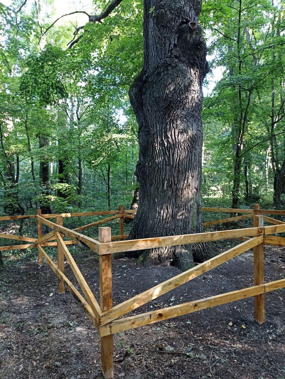 Навколо дерева лісівники облаштували захисний парканчик, щоб відвідувачі не пошкоджували дерево, та створили зручне місце для відпочинку, щоб населення мало змогу комфортно відпочивати у затишку дібров.