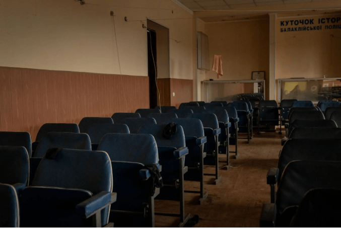 БАЛАКЛЕЯ, Украина — Признаки отчаяния были повсюду. Брошенная военная техника. Банки с едой и посуда оставлены на столах. Почта разбросана по офисным этажам. Одежду оставили висеть на веревках.
