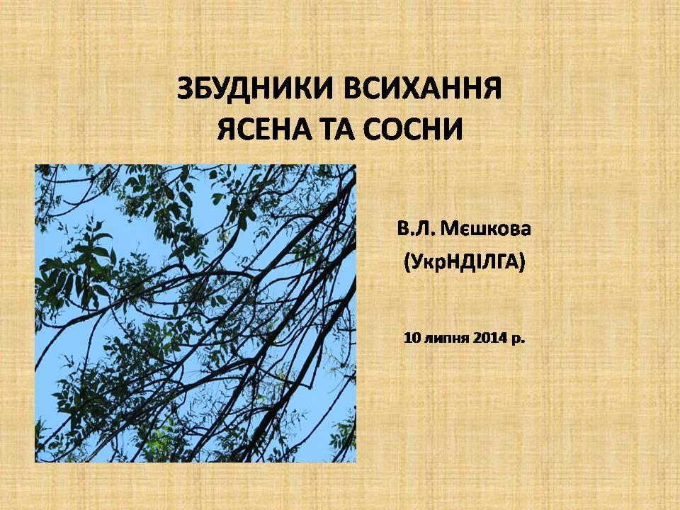 Размещаю доклад и презентацию (нажмите на рисунок для укрупнения) Валентины Львовны Мешковой ,представленный на совещании по лесозащите в Новоград-Волынске. М.П.