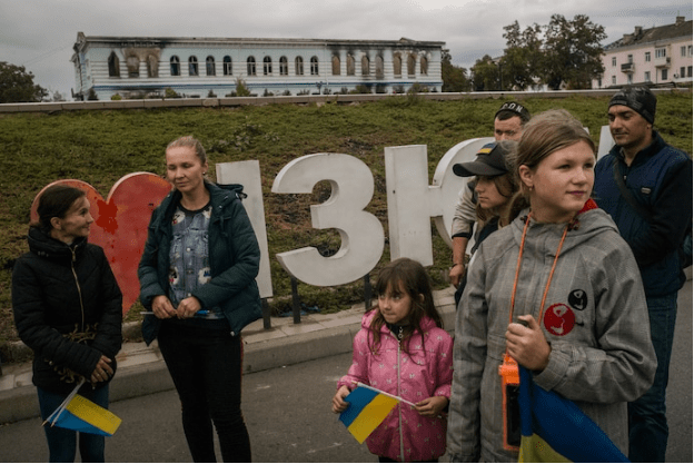 Соседи приветствовали друг друга через заборы. Некоторые проехали на велосипедах по центральной площади города. Группа Лукьяненко собралась вокруг плаката «Я ЛЮБЛЮ ИЗЮМ» в центре города, сияя и держа свои флаги.