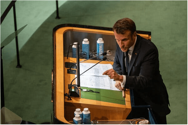 «То, что мы наблюдаем с 24 февраля, — это возвращение к эпохе империализма и колоний», — сказал он собравшимся, имея в виду день, когда началось вторжение России. «Франция отвергает это. Франция упрямо будет искать мира».