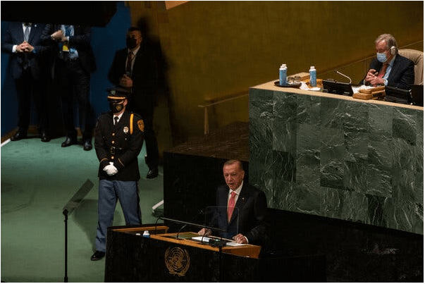 Г-н Макрон и г-н Эрдоган были двумя наиболее пристально наблюдаемыми выступающими во вторник в отсутствие президента Байдена, чье выступление было отложено из-за поездки в Великобританию на похороны королевы Елизаветы II. Лидер США выступит перед ассамблеей в среду, когда, как ожидается, он выступит на темы международного сотрудничества и прав человека и предупредит, что вторжение России в Украину нарушает международное право и угрожает порядку.